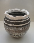 2014bolle vaas, zwart steengoed met witte glazuren