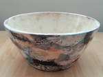 2021Ronde schaal van steengoed met veel kleuren geglazuurd. Binnenkant is zwart